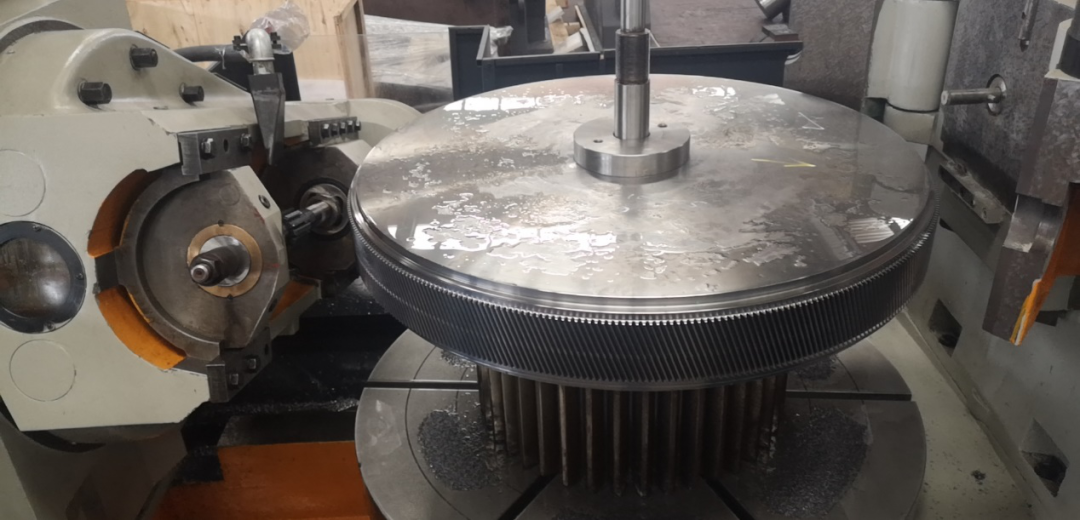 The user is inspecting the newly manufactured large gear in our workshop