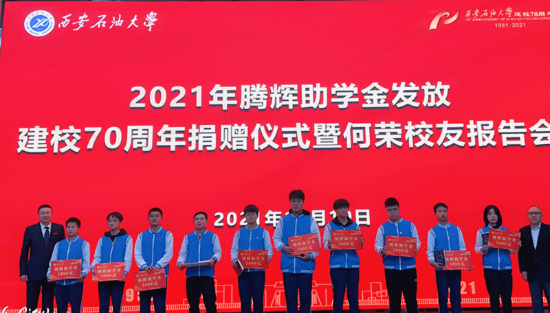 1、Since 2006, the chairman of the company, Rong He, has personally established the Tenghui Scholarship at Xi'an Shiyou University, donating 100,000 RMB annually. The university's Hu County New Campus has named the student activity center "Tenghui Student Activity Center";